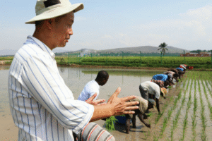 Agriculture expert Jiang Daiming instructs farmers how to plant rice in the Commune of Gihanga in Burundi’s northwestern Bubanza province. [Photo/Xinhua]