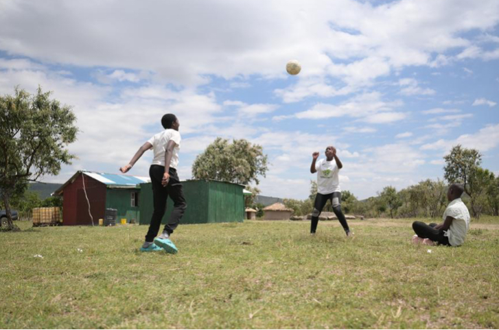 Girls are playing with a ball at the Namunyak Rescue Center, in Aitong town of Narok County, southwest Kenya, on Aug. 31, 2025. (Xinhua/Yang Guang)