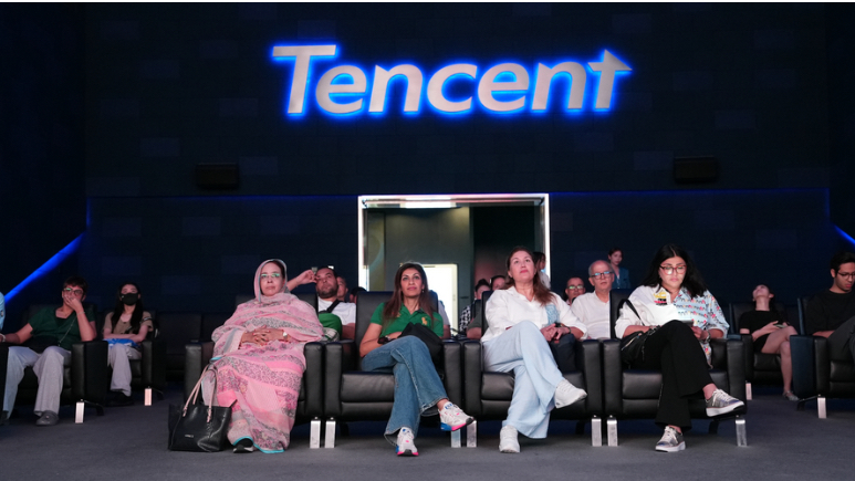 Participants of the 2025 Training Program for Arab Officials and Scholars in Culture and Tourism visit the Tencent headquarters in Shenzhen, South China’s Guangdong province, on Sept 16, 2025. [Photo provided to chinadaily.com.cn]